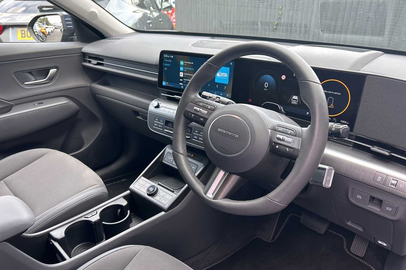 With only 2,000 miles on the clock, this 2025 Hyundai KONA Ultimate offers an exceptional opportunity to acquire a nearly new vehicle. Being Hyundai manufacturer approved, this electric KONA Ultimate comes with the assurance of quality and reliability. The car is equipped with automatic headlights with dusk sensor, ensuring optimal visibility at all times, and also boasts Bluetooth connectivity with voice recognition. The heated steering wheel provides added comfort during colder months, and the wireless phone charging pad offers convenient charging on the go.